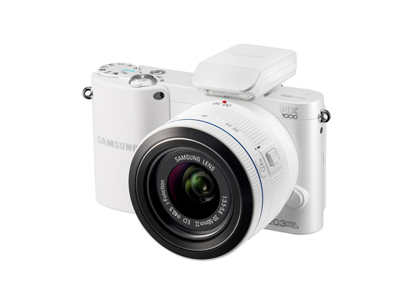 This is the Samsung NX100, from all those years of seeing only black cameras this is a ‘fresh’ look. There are several playful colours out there but since “White” is the new “Black” it is normally the preferred choice.