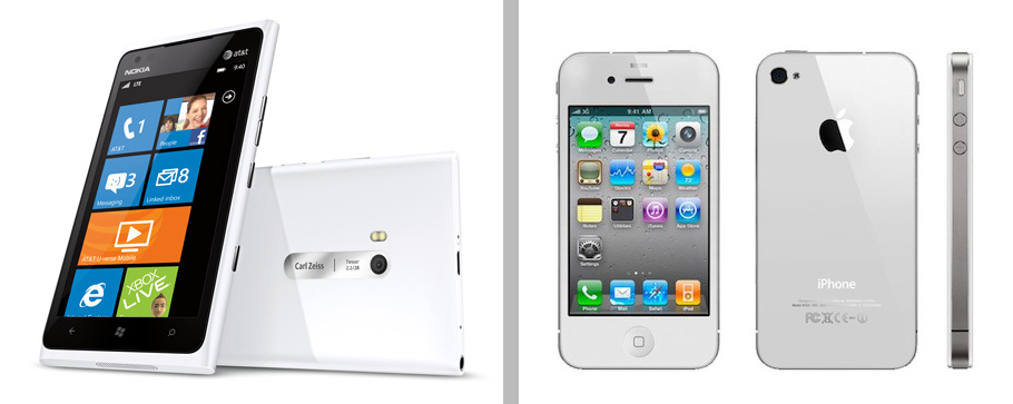 It feels good to hold this new, white, clean Nokia Lumia 900, its frame gives a sleek and sophisticated feel to the phone. It is a nice change from the black variety. Other examples of the white phone out there are the HTC Radar, and white Iphone.