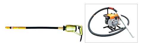 ส่วนที่สำคัญอย่างหนึ่งที่สามารถตรวจสอบได้อย่างง่ายคือ ในการเทคอนกรีตจะต้องทำการเขย่าหรือจี้คอนกรีต เพื่อเขย่าให้คอนกรีตแทรกตัวเต็มในแบบหล่อ และไล่อากาศออกจากคอนกรีต โดยใช้เครื่องเขย่าคอนกรีต ( Vibrator) ไม่ว่าจะเป็นแบบไฟฟ้า หรือแบบเครื่องยนต์ บ่อยครั้งถ้าไม่มีเครื่องจี้ หรือเครื่องเขย่า คอนกรีตที่หล่อเสร็จมักจะมีคุณภาพไม่ค่อยดี หรือไม่ดีเอามากๆ ต้องถึงกลับทุบทิ้งแล้วหล่อใหม่ ดังนั้น เครื่องเขย่าคอนกรีต จึงเป็นเครื่องมือที่สำคัญย่างหนึ่งที่ขาดไม่ได้ อย่างน้อยที่สุดหากไม่มีเครื่องเขย่าคอนกรีตผู้รับเหมาต้องกระทุ้งคอนกรีตขณะที่เทใหม่ๆด้วยเหล็ก ขนาดเหมาะมือ แต่ต้องพยายามให้กระทุ้งมากหน่อยเพื่อให้เนื้อคอนกรีตแทรกไปตามซอกมุมในแบบหล่อ