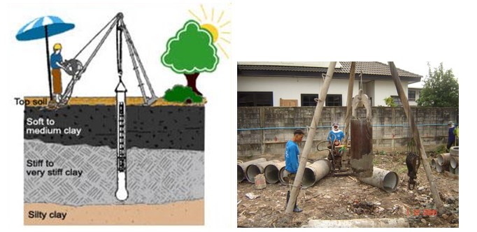 เสาเข็มขนาดกลางอีกประเภทหนึ่งคือ งานเสาเข็มเจาะ คือเจาะเอาดินภายในหลุมเสาออก แล้วจึงเทคอนกรีต และใส่เหล็กเสริม เมื่อตกลงที่จะทำการเจาะทำเสาเข็มที่ความลึก 20 เมตร ถ้าเขาเจาะลึกลงไปเพียง 18 เมตร เราจะรู้ได้อย่างไร ถ้าทำการเทคอนกรีตโดยการปล่อยให้คอนกรีตตกร่วงลงไป(free fall) โดยไม่ใช้กรวย ซึ่งเป็นผลทำให้วัสดุส่วนผสมของคอนกรีตแยกกัน หรือ เทคอนกรีตเหลวเกินไปเราก็ไม่ทราบได้ ซึ่งผลที่ตามมาคือคอนกรีตสามารถรับน้ำหนักได้น้อย ซึ่งก่อให้เกิดปัญหาที่จะต้องแก้ไขตามมาอีกมากมาย เช่นรับน้ำหนักไม่ได้ อาคารทรุด เป็นต้น ต้องคอยควบคุมดูแลมากขึ้น