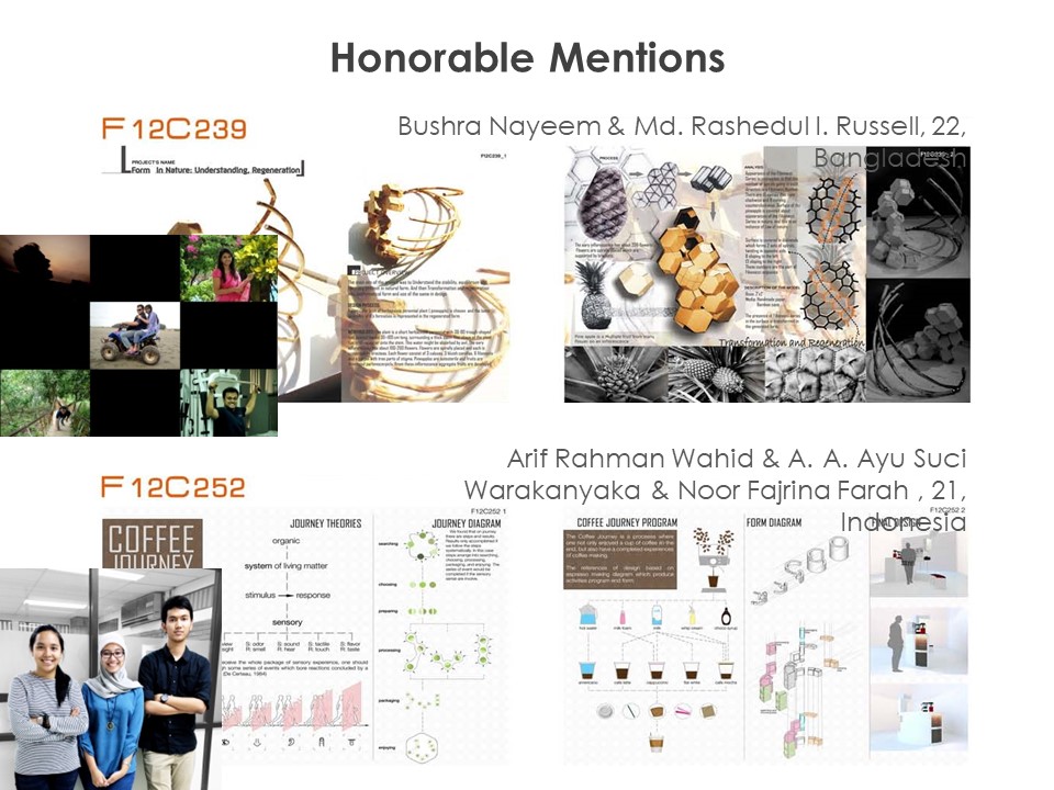 The selection process emphasizes concepts that not only respond to the competition theme, but also stimulates thinking, debates, and propose new and innovative ideas.