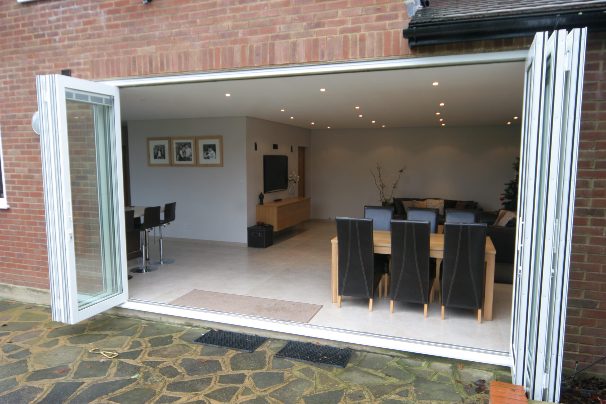 3. ประตูบานเฟี้ยม เป็นรูปแบบผสมของประตูบานเปิดและบานเลื่อน ใช้สำหรับช่องเปิดประตูที่มากกว่าบานประตูเปิด-ปิดคู่จะทำได้ บานประตูจะถูกแขวนกับลูกล้อด้านบนและด้านล่างมีแกนป้องกันบานประตูแกว่งเสียบลงบนรางที่พื้น ระหว่างบานประตูมีการยึดติดระหว่างบานด้วบานพับประตู บานประตูชนิดนี้เหมาะสำหรับภายในอาคาร เนื่องจากไม่สามารถปิดบังช่องว่างระหว่างด้านบนและล่างของบานประตู