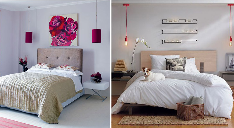 As for the height: depending on which type of lamp you’ve chosen, there is one basic rule. The bottom of the lamp should be at chin level when sitting up in bed. There is no use of a lamp that shines directly in to your/your partner’s eyes in the middle of the night. One practical (but not all that aesthetically pleasing) quick fix for the height issue is to use swing arm lamps. They are adjustable for all heights and directions that you will require.